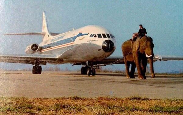 teď jsem narazil na starou fotku kde slon přetahuje Caravelle Thajských aerolinek