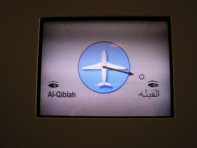 Kuba: To je naprosto normální a už jsem se s tím setkal i u nearabské letecké společnosti. Islám vyžaduje, aby se věřící modlili směrem k Mekce, což je v letícím letadle bez "pomoci" docela problém. V modlitebnách na letištích máte směr také a to i v Praze.