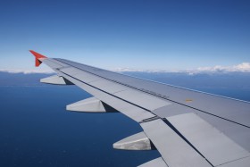 Let SU871 z Moskvy do Soči, v pozadí pohoří Kavkaz.