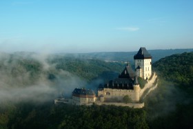 Hrad Karlštejn vyfocen při vyhlídkovém letu balónem OK-8000.