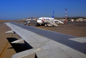 06.07. Po příletu linky z Prahy, odkud přiletělo ještě OK-TVG (v popředí), které je již odbavováno. Kromě těchto dvou navštívili Heraklion tento den od TVS ještě B738 (Calima) z Varšavy, A320 (SmartLynx) z Bratislavy a A320 (Air Sweden) z Ostravy.