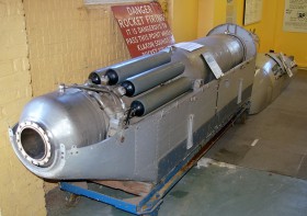 The De Havilland Aircraft Heritage Centre. De Havilland Super Sprite, první raketový motor vyrobený pro Comet 1 měl pomáhat při vzletech na letištích s vysokou teplotou a velkou nadmořskou výškou.