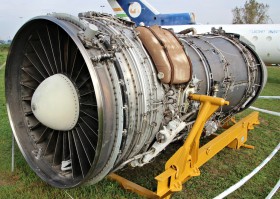 Vystavený motor D-30 v leteckém muzeu u letiště Budapešť.
