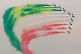Italská armádní akrobatická skupina "Frecce Tricolori" byla jedním z účastníků této akce na Air Power 2019. A jejich dýmová prezentace obsahuje vždy národní barvy italského státu.