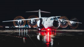 Večerní přílet A400M z OTP na nocování v Praze, aby další den mohla pokračovat přes ARN do BZZ na svém výcvikovém letu.