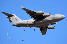 Arctic Thunder 2014. Kromě E-3B jsou vidět ještě 2x F-22, 1x C-5 a 1x C-17. Kromě C-5 jsou všechna letadla bázovaná zde.