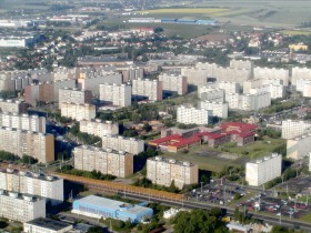 Prague - Repy district through the window of airplane approaching RWY 31 Ruzyne airport